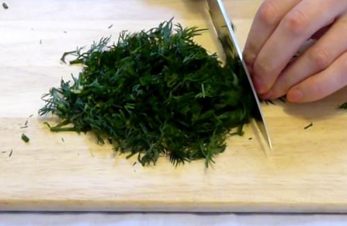 2. Тщательно промыть зелень. Укроп я всегда беру на глаз, в составе ингредиентов дается лишь их приблизительное количество. Можно использовать любые его части — и сами зонтики, и стебель, и их ажурную листву. Если куст укропа большой, то стебель нужно порезать.