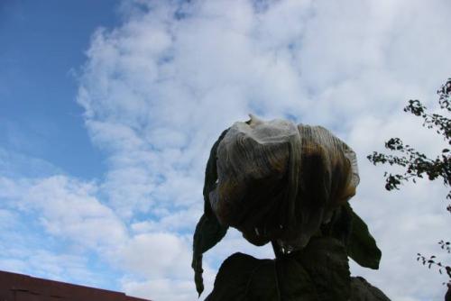 Марля на корзинках подсолнуха: видит око, да зуб не ймёт