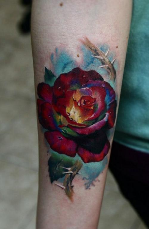 А ниже представлены фото татуировок с изображением розы от разных мастеров.