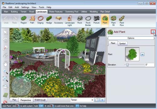 Преимущества: есть обширная база зеленых объектов: деревья, клумбы, живые изгороди и т.д., инструментов – более 1000 позиций. Можно внести коррективы с поправкой на климат, освещенность, минимальную и максимальную температуры, то есть выбрать те растения, которые приживутся в вашей климатической зоне. Каждый цветок или кустарник сопровождается описательной карточкой. А в режиме ускоренной перемотки можно увидеть, как изменится растительность на участке за год-два-пять.