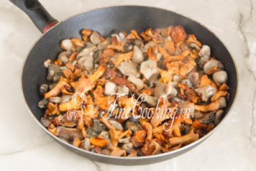 Предварительно отваренные до готовности (в течение 40-50 минут после закипания) лесные грибы нужно обжарить в 100 миллилитрах растительного масла около 20-25 минут на среднем огне без крышки. За это время грибы не только потеряют лишнюю влагу, но и зарумянятся, станут ароматными, немного хрустящими и очень вкусными.