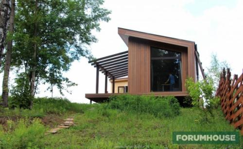 От наклонной задней стенки мини-дома потом отказались для упрощения и удешевления строительства.
