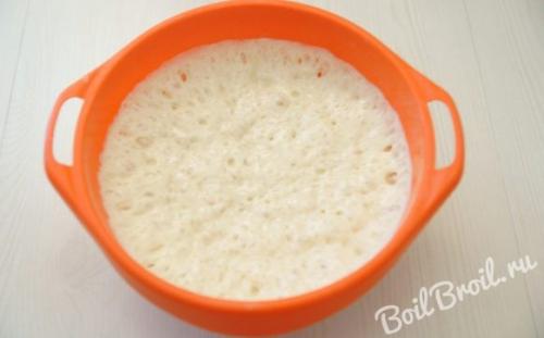 Поставить смесь в теплое место до появления «шапки» или увеличения объема массы в 3-4 раза (при подкормленных дрожжах быстрее созревает будущая опара и таким образом проверяется качество используемых дрожжей).